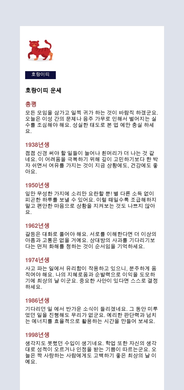 내 인생을 미리 보는 신통한 띠별운세를 공유해 드립니다.