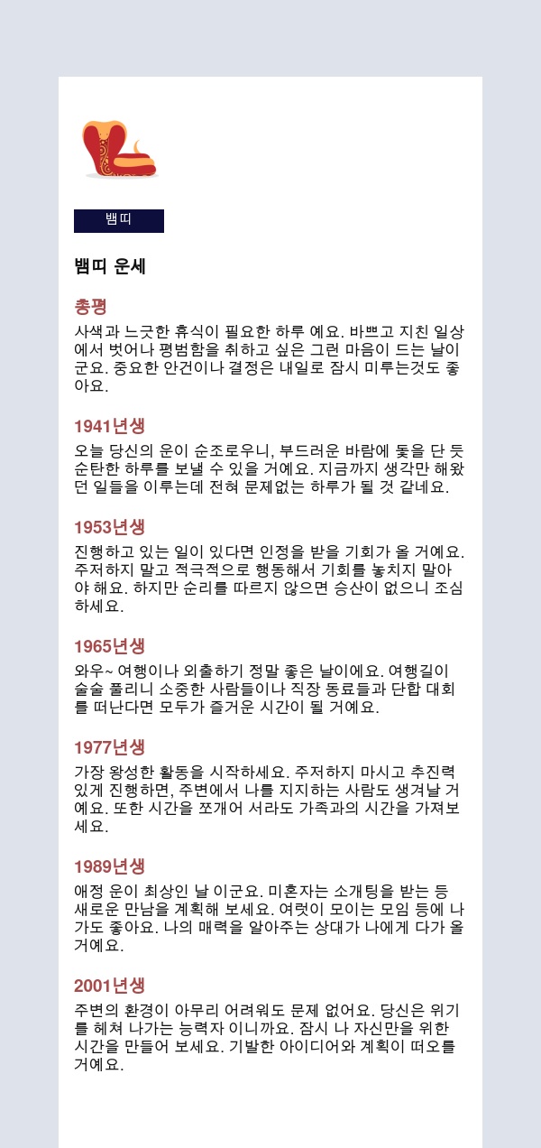 내 인생을 미리 보는 신통한 띠별운세를 공유해 드립니다.