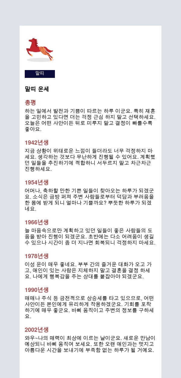 내 인생을 미리 보는 신통한 띠별운세를 공유해 드립니다.