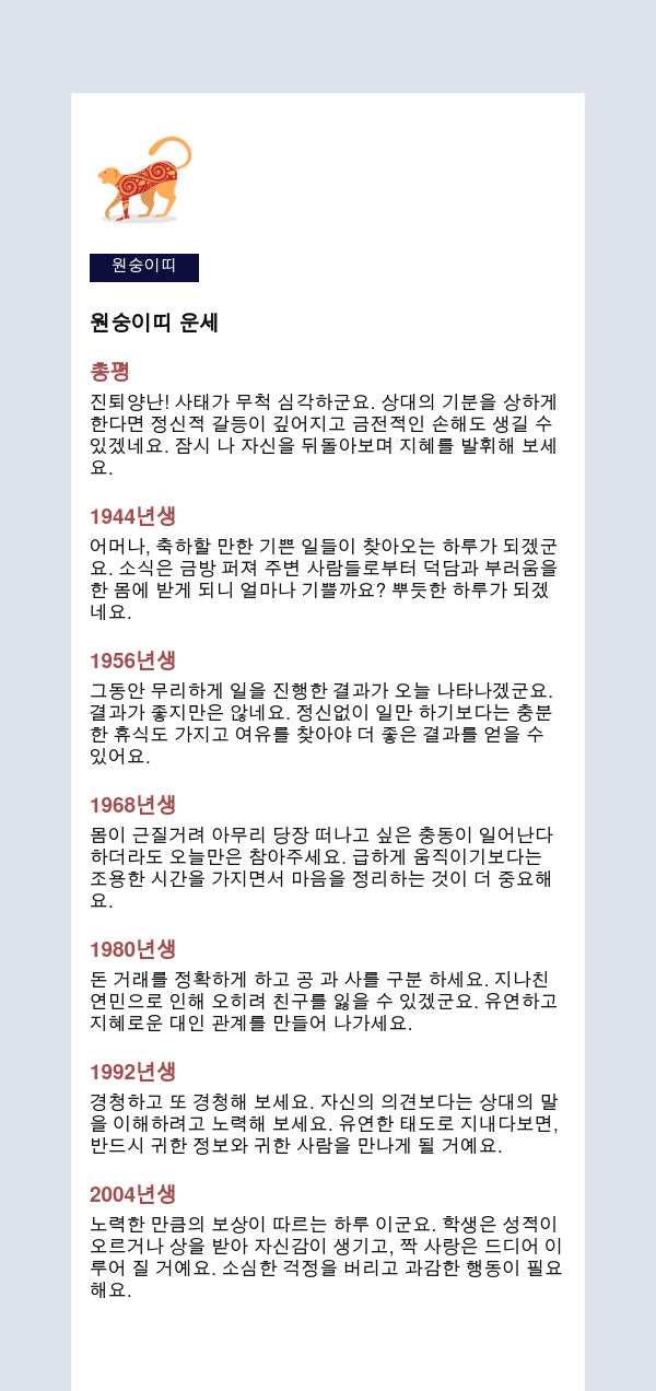 2026년 04월 04일 띠별 총평 .