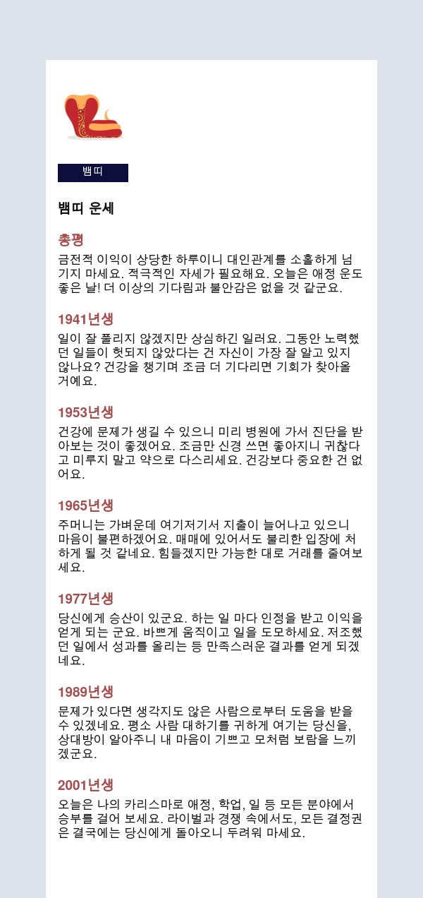 내 인생을 미리 보는 신통한 띠별운세를 공유해 드립니다.