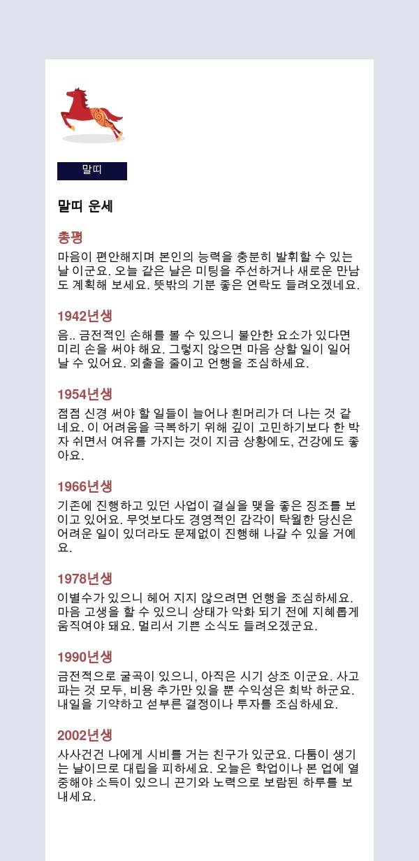 내 인생을 미리 보는 신통한 띠별운세를 공유해 드립니다.