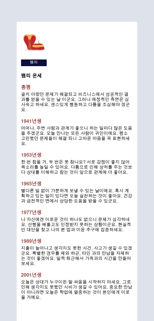 내 인생을 미리 보는 신통한 띠별운세를 공유해 드립니다.